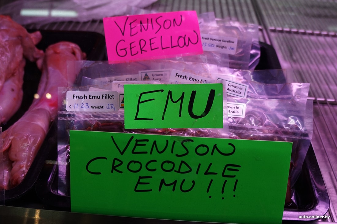 Развею мифы про австралийскую кухню. Мясо кенгуру едят, но мало. Говорят, жестковато. Крокодилов готовят на севере страны в Дарвине, в общепите некоторых городов можно встретить мясо страусов эму.