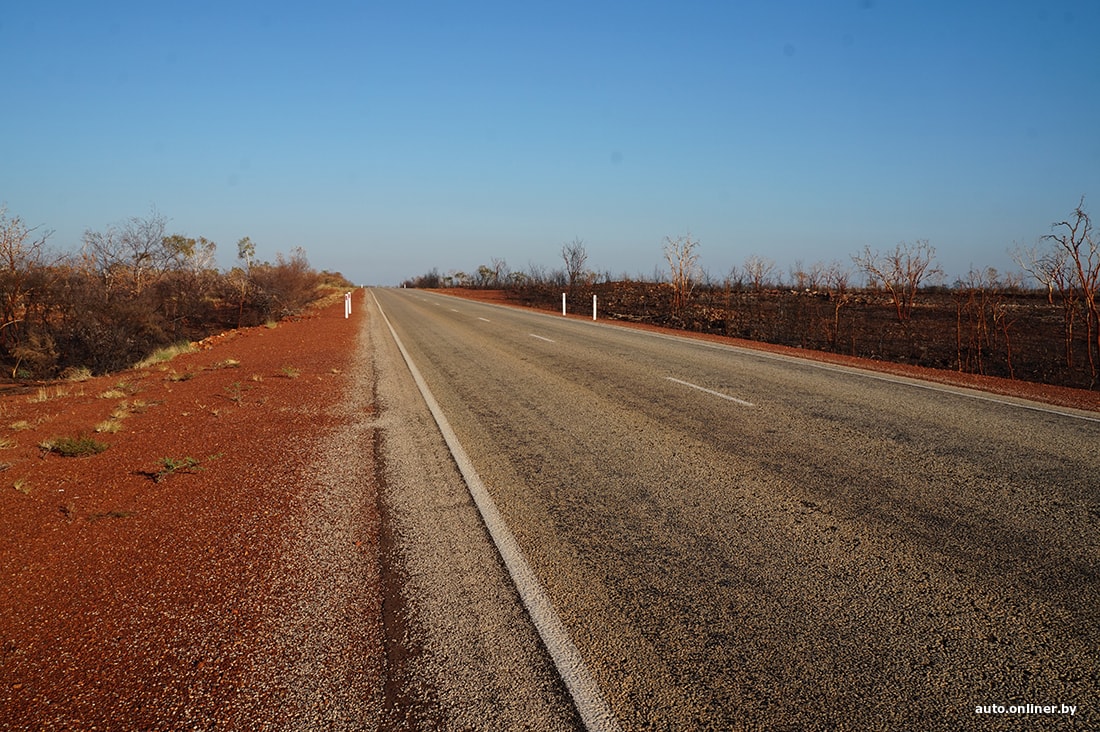 Пейзаж постепенно меняет цвет с песочно-желтого на морковно-оранжевый. Машин практически нет, зато все вокруг заполнено живностью — кенгуру, овечки, козы, эму, ящерицы...