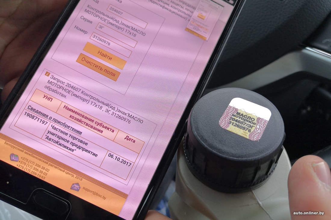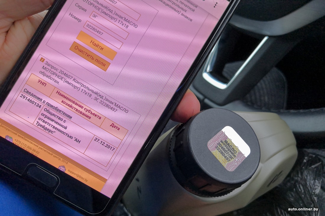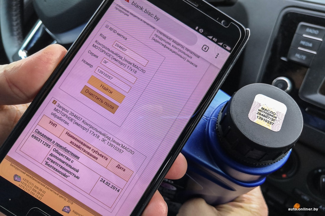 Например, на сайте Castrol сказано, что продукцию в Беларусь поставляют три организации, одна из которых — автомобильный дилер. Имея список официальных импортеров, достаточно сопоставить его с данными, зашифрованными в буквенно-цифровом коде акциза.