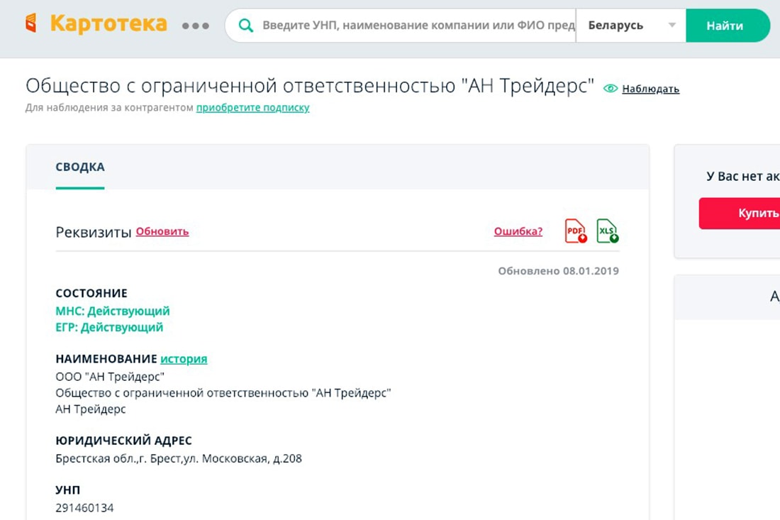 Проверка по базе данных показала, что владельцами акцизов, размещенных на приобретенных нами банках GM, числятся все тот же ИП Рунцо Юрий Александрович, а также Михалюк Никита Михайлович. В двух случаях система указала, что акцизополучателями являются ЧТУП «АвтоКиликия» (запрос в Google выводит на сайт с автохимией, аккумуляторами и пр.) и «АН Трейдерс» (сайта не нашли, лишь данные о регистрации, УНП и т. д.).