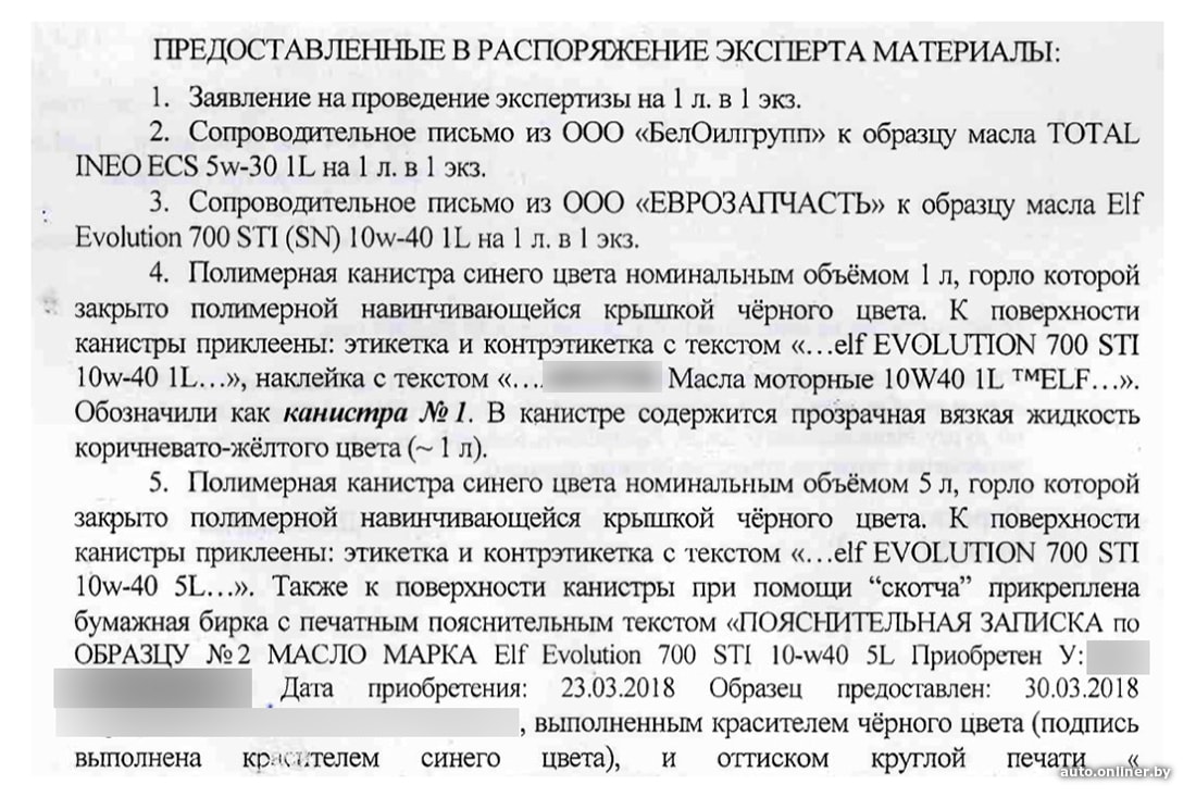 В прошлом году в Беларуси разгорелся крупный скандал. Один из импортеров инициировал проверку моторного масла, предоставив в Государственный комитет судебных экспертиз семь образцов: две канистры (Elf Evolution 700 STI 10W-40 и Total Quartz Ineo ECS 5W-30) были ввезены официальными поставщиками, а пять с виду точно таких же банок куплены в торговой сети.