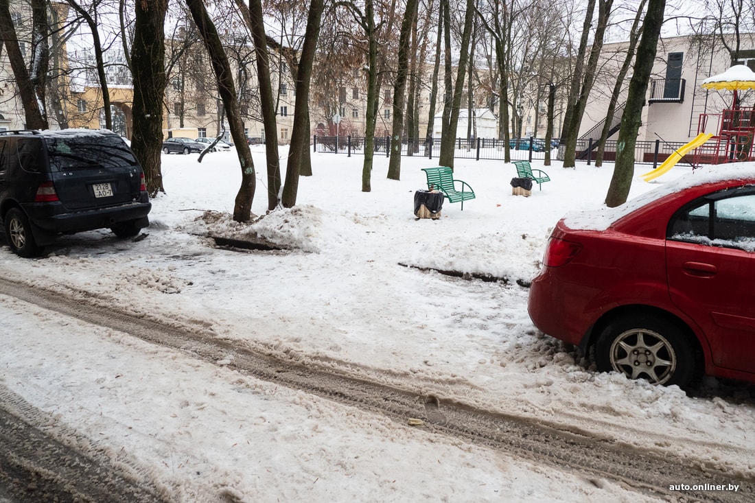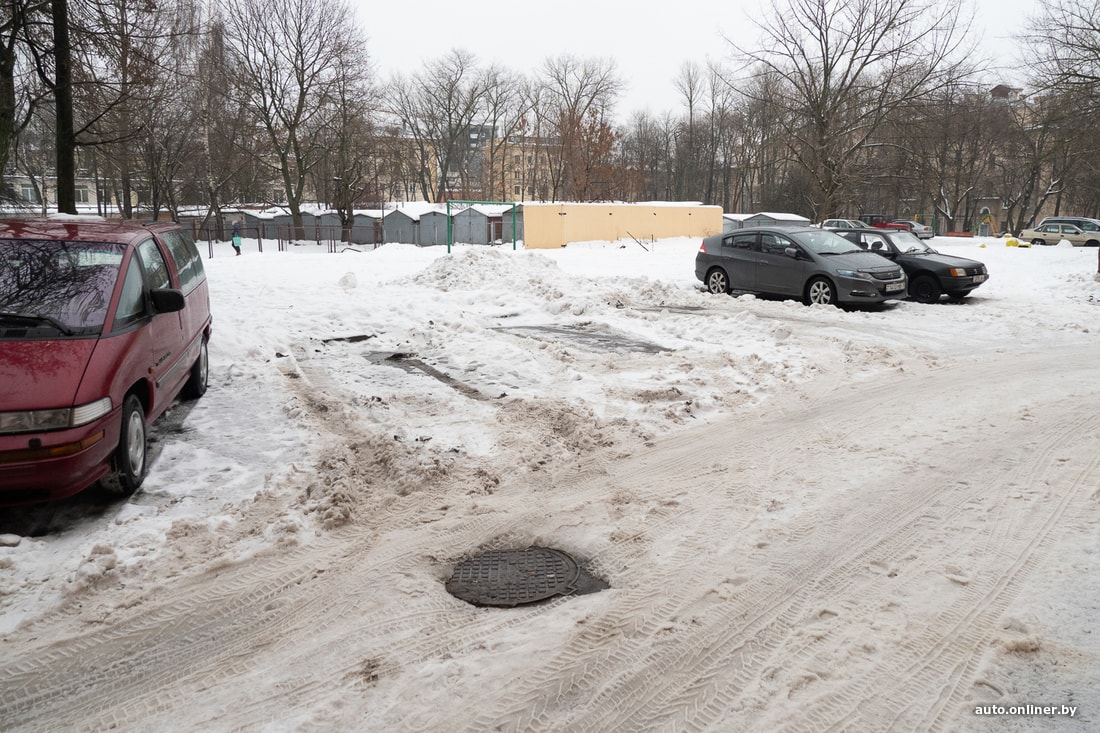 Двор одного из домов «ворот Минска» — того, что справа, если ехать от вокзала — долгое время был заставлен транспортом. Среди машин жителей и грузовиков, привозивших товары в местные магазины, встречалось немало автомобилей, оставленных на время. Двор стал аналогом перехватывающей парковки, идеальным местом для транспорта командировочных. Говорят, нередко возникали аварийные ситуации, спровоцированные чужим транспортом. Вначале местные жители добились установки на въездах знака «Движение запрещено». По ПДД он разрешает проезд коммунальным службам, обслуживающему транспорту, машинам граждан, проживающих или работающих в этой зоне (при отсутствии иных возможностей подъезда). Но всем известно, как работают подобные знаки. В условиях отсутствия неизбежности наказания нарушители их просто игнорируют.