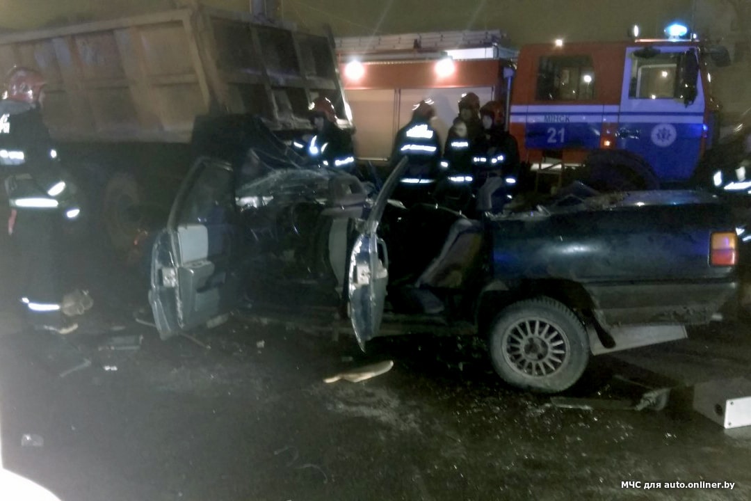 — 29 января в 2 часа 10 минут водитель автомобиля Audi 100, двигаясь по улице Кабушкина со стороны улицы Крупской, на перекрестке с Партизанским проспектом совершил наезд на остановившийся впереди на запрещающий сигнал светофора автомобиль МАЗ. В результате ДТП транспортные средства получили механические повреждения. Пассажир Audi 100 погиб. Три пассажира и водитель этой машины ранены и в настоящее время находятся в больнице. Водитель автомобиля МАЗ не пострадал. На место происшествия выбывали сотрудники ГАИ, представитель следствия и специалист управления ГКСЭ по городу Минску. Проводится проверка, — рассказали в Госавтоинспекции.