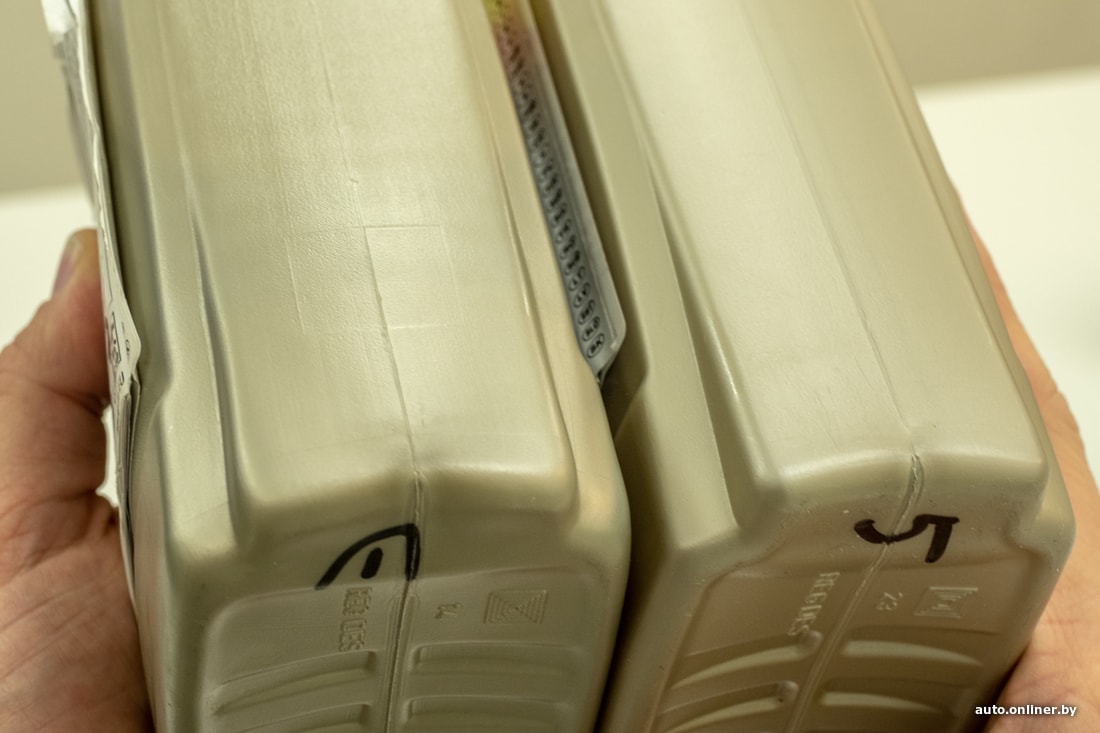 Более явная разница — в шкале индикатора уровня масла. В который раз замечаем, что у оригинальных масел (подтвержденных результатами экспертизы) она чуть шире. Совпадение?