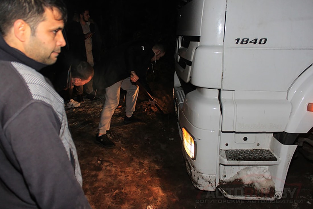 На самом же деле люди просто так, без лишних мотиваций решили помочь. Некоторые не боялись вымазать свою чистую одежду в грязь, становясь на колени и подкапывая бампер и колеса. Дальнобойщик не говорил ни по-русски, ни по-английски. Но в том же сообществе нашлась девушка, которая владела турецким в совершенстве. Тяжелые работы и попытки вытянуть фуру машиной МЧС ни к чему не привели. Из снежно-грязевого плена грузовик освободил простой водитель — шофер щебневоза.