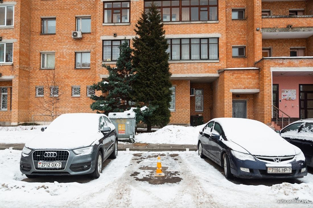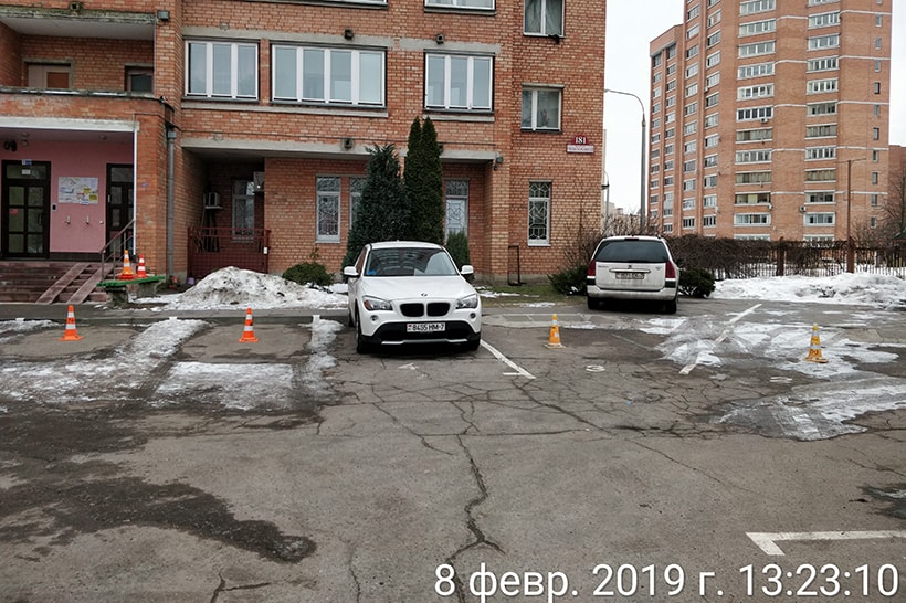 В конце января мы писали о дворе дома по пр. Независимости, 181. Там сложилась неоднозначная ситуация: парковочные места обозначили цифрами с номерами квартир, установили препятствующие проезду конусы. Как нам удалось убедиться, за тем, чтобы на места не становились нерезиденты, рьяно следят консьержи. После выхода статьи на сайте 115.бел появилось обращение: «Проезжая часть во дворе заблокирована конусами. Просьба убрать». В ЖЭУ отчитались, что просьба выполнена. Однако, как оказывается, ненадолго.