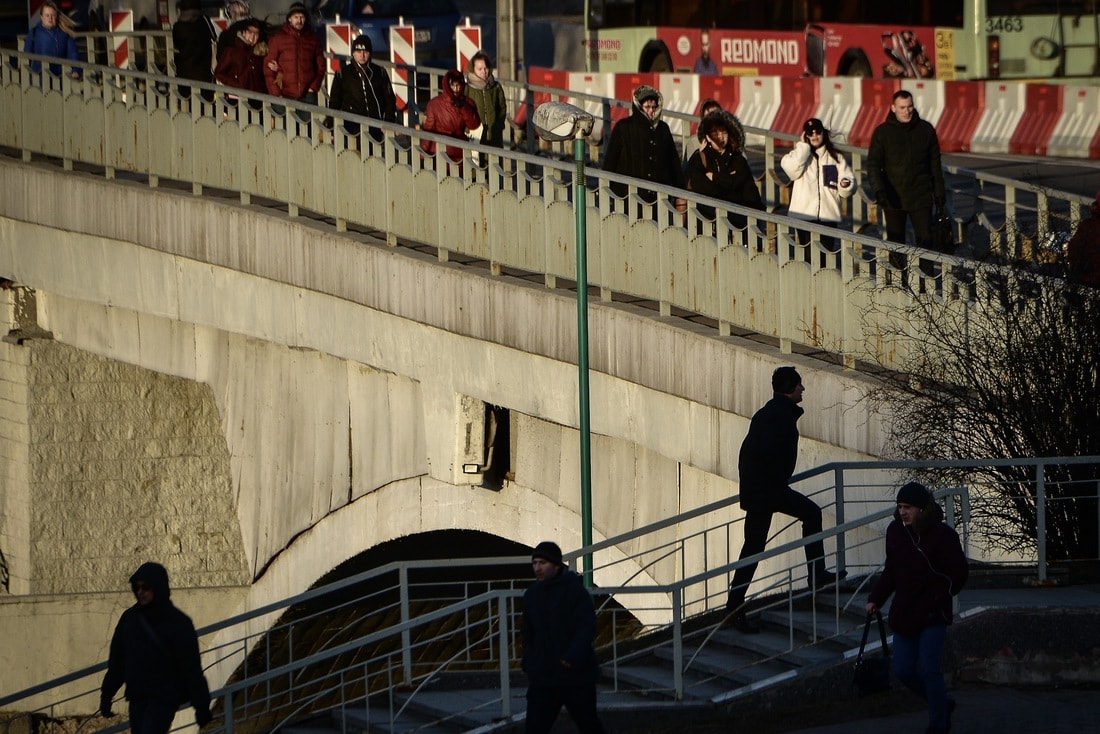 С 17:30 до 19:00 затруднений в движении автомобилей и общественного транспорта на улице Немиге не возникло. Пешеходный поток направился по мосту через Свислочь со стороны Троицкого предместья. Движение пешеходов по мосту со стороны Зыбицкой пока открыто, но запрещающий знак уже установлен.