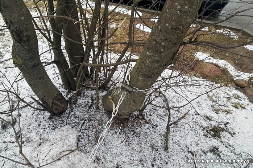 Наш читатель рассказал о замечательном соседе, с которым столкнулись жильцы дома номер 12 по улице Жудро в Минске. Владелец автомобиля Volkswagen оригинально решил вопрос с парковочным местом для своей машины. Для этого ему потребовалась цепь достаточной длины и навесной замок.