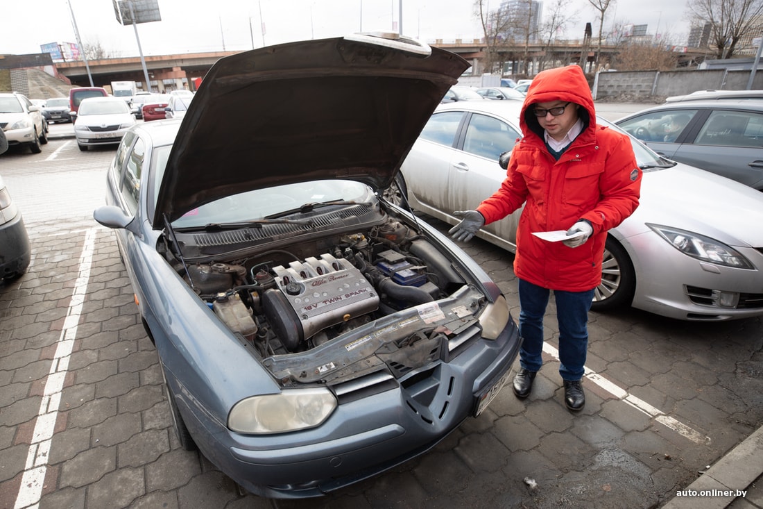 Молодой человек по имени Максим, приехавший на Alfa Romeo (2003 г. в.), становится следующим участником эксперимента. Парень говорит, что меньше года назад производил замену двигателя, сейчас под капотом «итальянки» установлен двухлитровый мотор. Однако проблема есть: