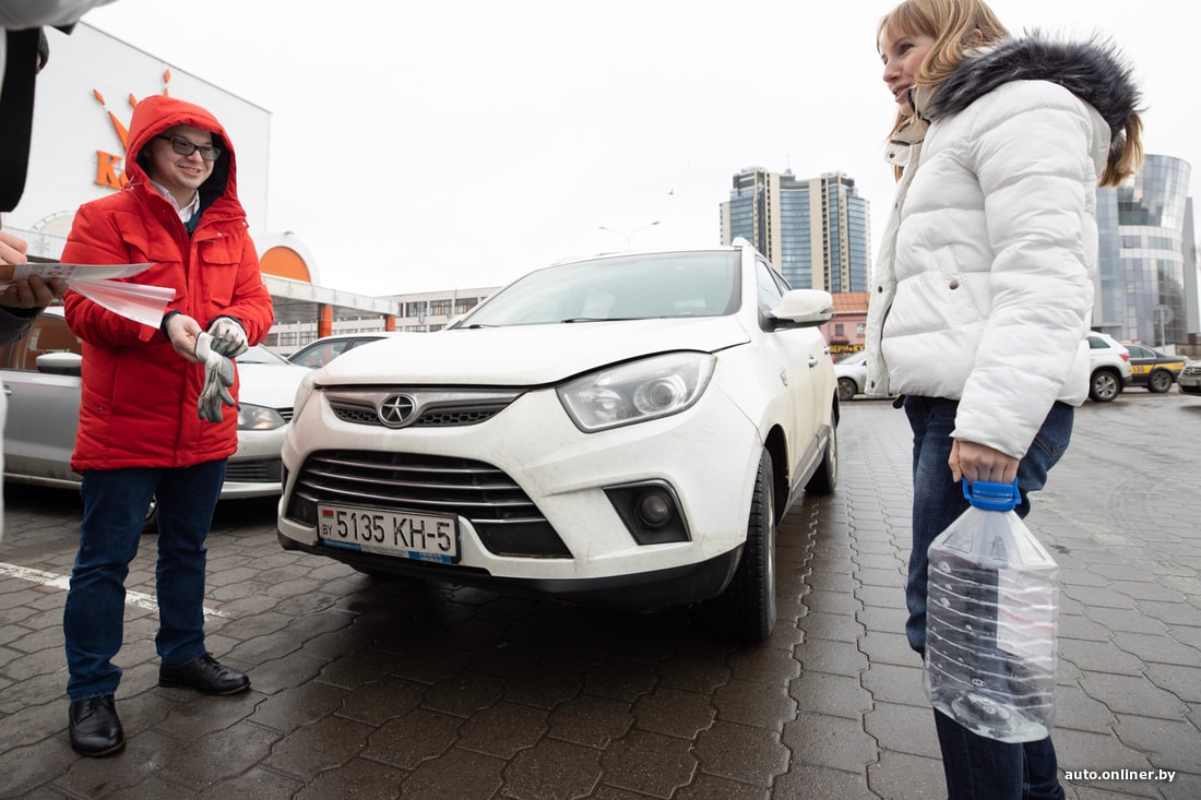 Увидев, что на парковке происходит нечто необычное, водитель Opel Insignia сам открывает капот: «Я следующий!» Михаил говорит, что живет на два города — Минск и Вильнюс: «Вообще-то я вольвист, но для поездок по Беларуси купил Opel Insignia. Обслуживает ее проверенный механик. А какое именно масло? Я не знаю...»