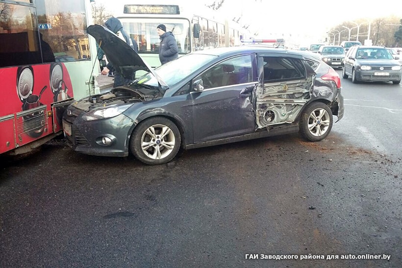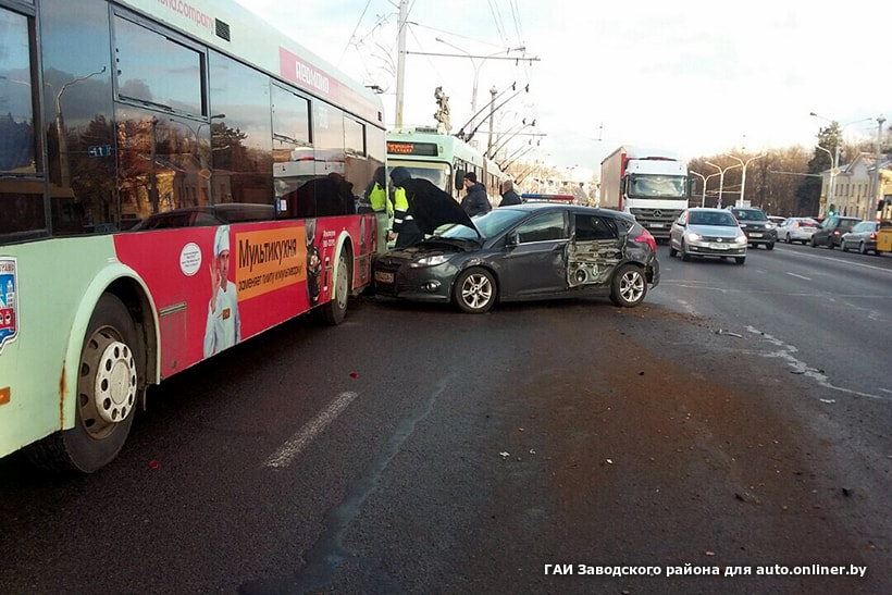 Старший инспектор ГАИ Заводского района Анастасия Забавская сообщила корреспонденту Onliner, что за рулем легкового автомобиля Ford находился водитель 1990 года рождения. Он двигался по Партизанскому проспекту со стороны улицы Варвашени в направлении улицы Лазо. Водитель пояснил, что перестроился в крайний правый ряд для того, чтобы высадить пассажира на остановке. В той обстановке скорость была слишком высока, а дистанция мала: когда водитель увидел троллейбус впереди, то не смог избежать столкновения. От удара машину отбросило на грузовой Mercedes.