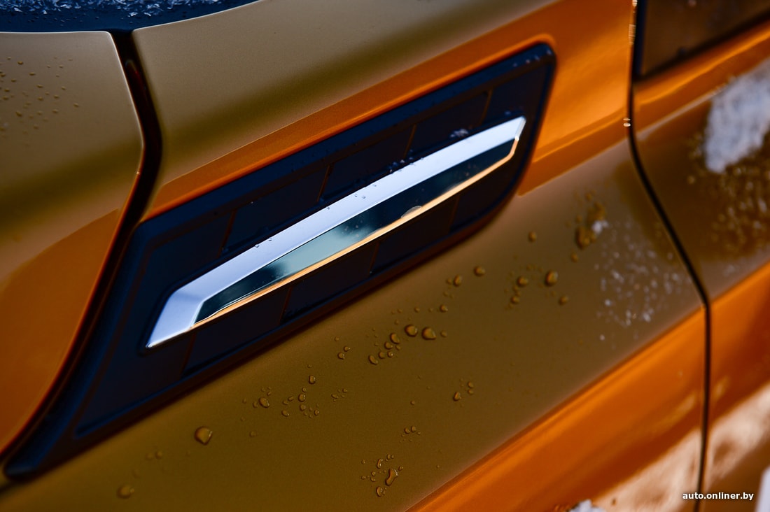 Первыми бросаются в глаза дерзкий рекламный желто-золотистый цвет и изменившиеся бамперы. В переднем «гриле» стало шесть вертикальных полосок вместо двух горизонтальных, светодиодные ходовые огни теперь подчеркнуты хромированными полосками снизу. Сзади — светодиодные стопы-габариты и переехавший вниз белый фонарь заднего хода. Финальная черта — новый дизайн колесных дисков R17.