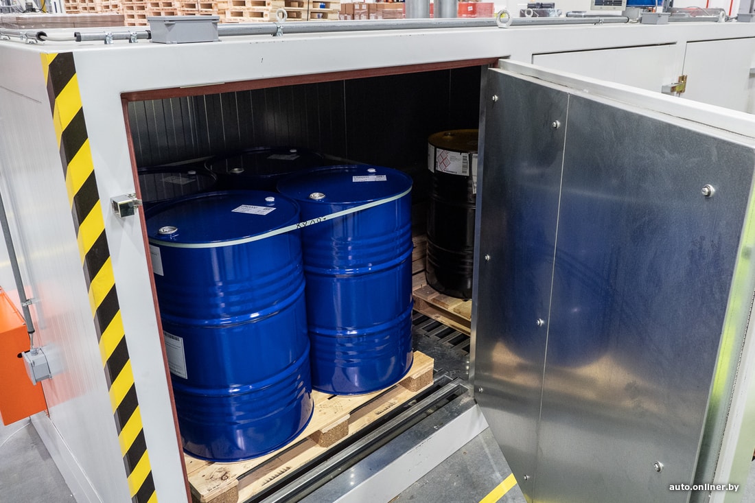 В цех смешивания поступают и присадки. Они также выглядят как маслянистая жидкость. Некоторые из них вязкие настолько, что по консистенции напоминают мед. Более жидкими их делают в специальных печах (разогревают до 70 градусов).