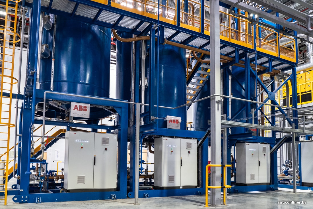 Вторая технология более востребована, предназначена для крупных партий до 150 тонн. Смешивание происходит в больших резервуарах. Внутрь попасть невозможно, но сотрудники уверяют, что в самом резервуаре происходит внутренняя рециркуляция вместе с распылением.