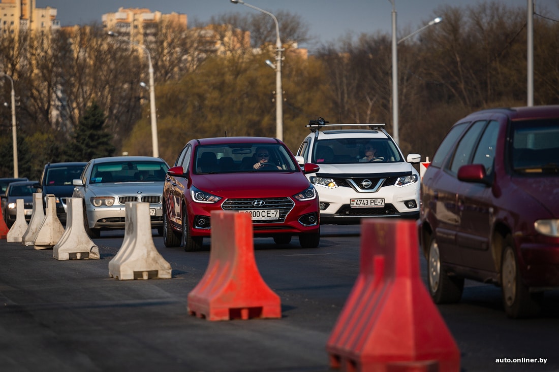 Движение было открыто после 8:00. В утренний час пик на участке были привычные заторы. Минск в эти весенние дни вообще страдает от пробок: на многих улицах активно ведется ремонт и реконструкция.