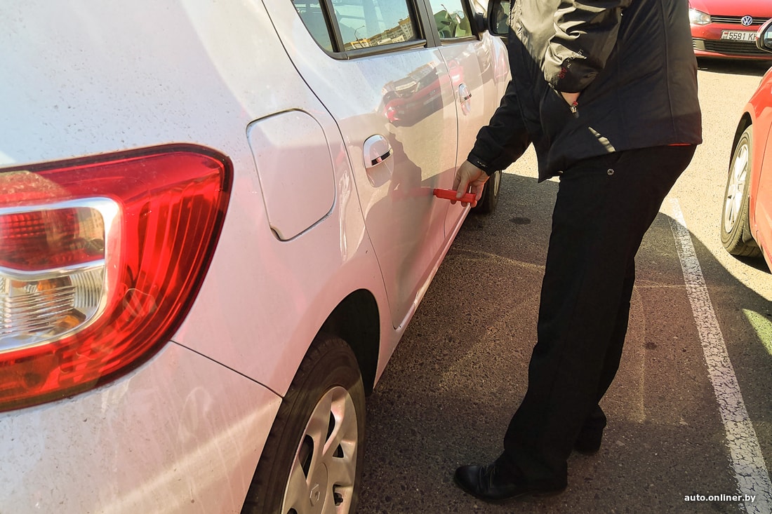 Молодой человек довольно долго вел беседу: предлагал пройти диагностику за 30 рублей для определения точной суммы, а еще обменять Sandero на Kaptur. Только после разговора о комплектациях кроссовера последовала стандартная проверка с толщиномером.