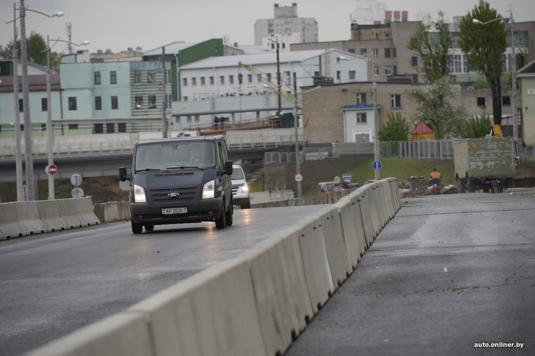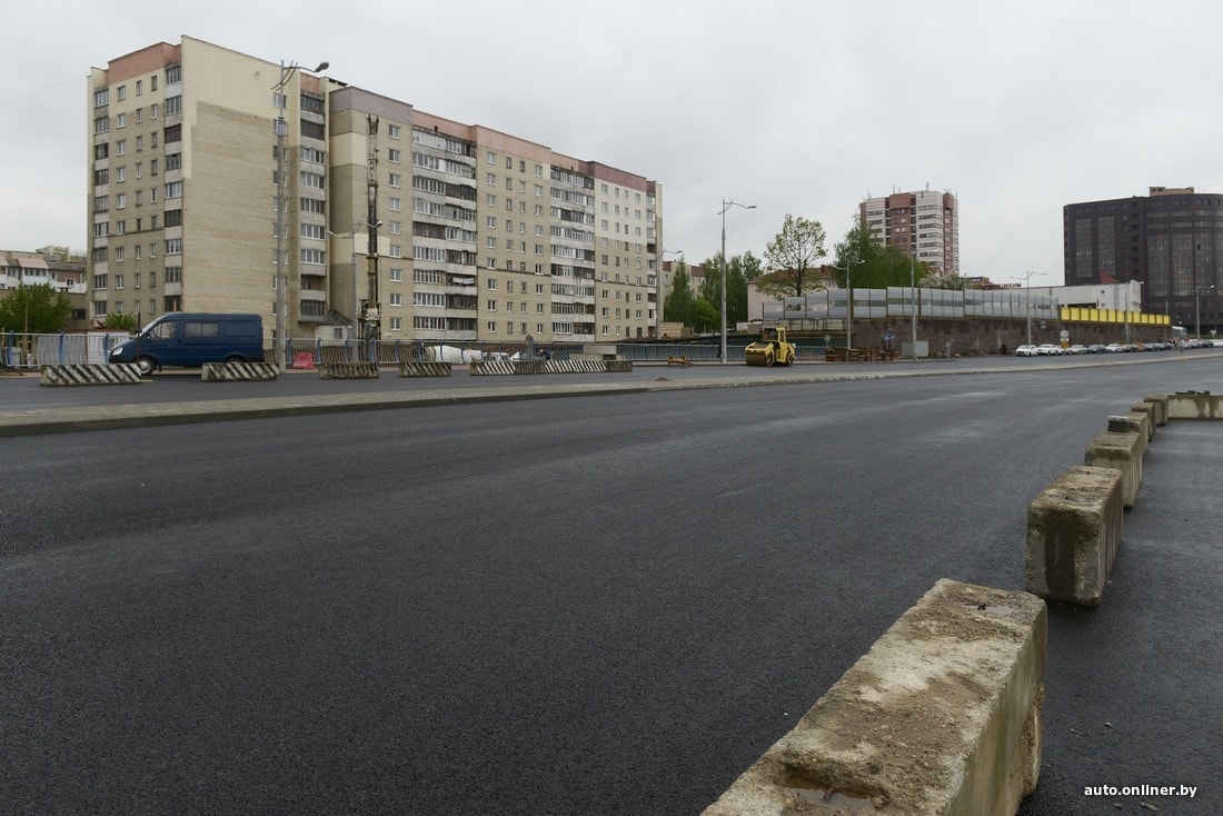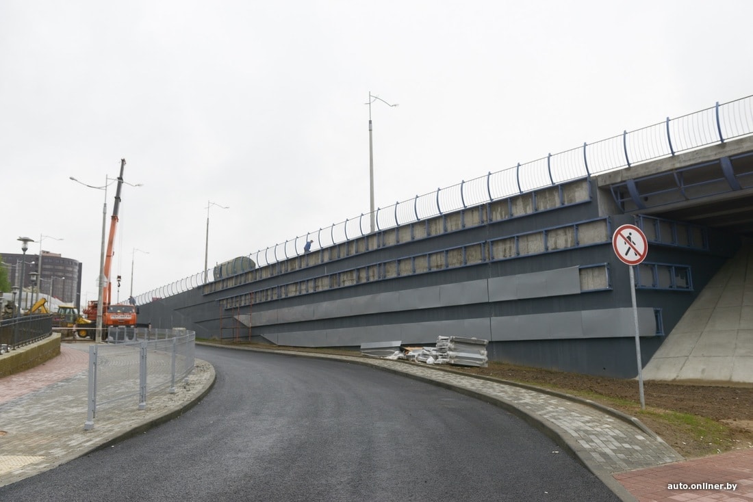 Путепровод обещали открыть к середине мая и не подвели. Это один из проектов дорожной инфраструктуры, который запустили специально незадолго до Европейских игр. Полностью работы еще не закончены, на самом путепроводе продолжают устанавливать разделительное ограждение, движение осуществляется только по двум полосам в обоих направлениях (вместо трех), благоустройство территории еще впереди. Однако проехать по мосту уже можно.