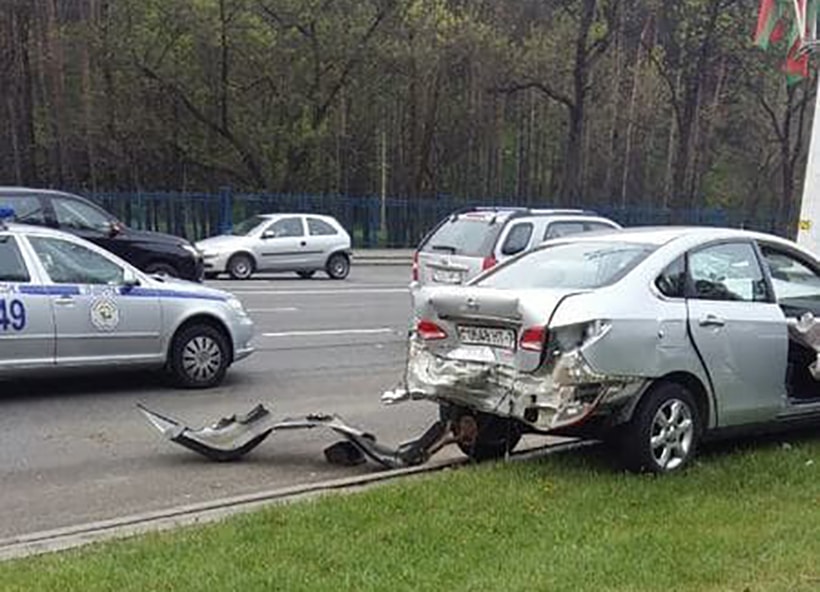 Сегодня утром на участке пр. Независимости вблизи станции метро «Борисовский тракт» можно было видеть последствия аварии. Nissan находился за пределами проезжей части, передней частью кузова врезался в столб. При этом задняя часть машины также была подбита. В Минской ГАИ сообщили, что удар об опору был вторым, первым стало попутное столкновение — в седан врезался Kia.