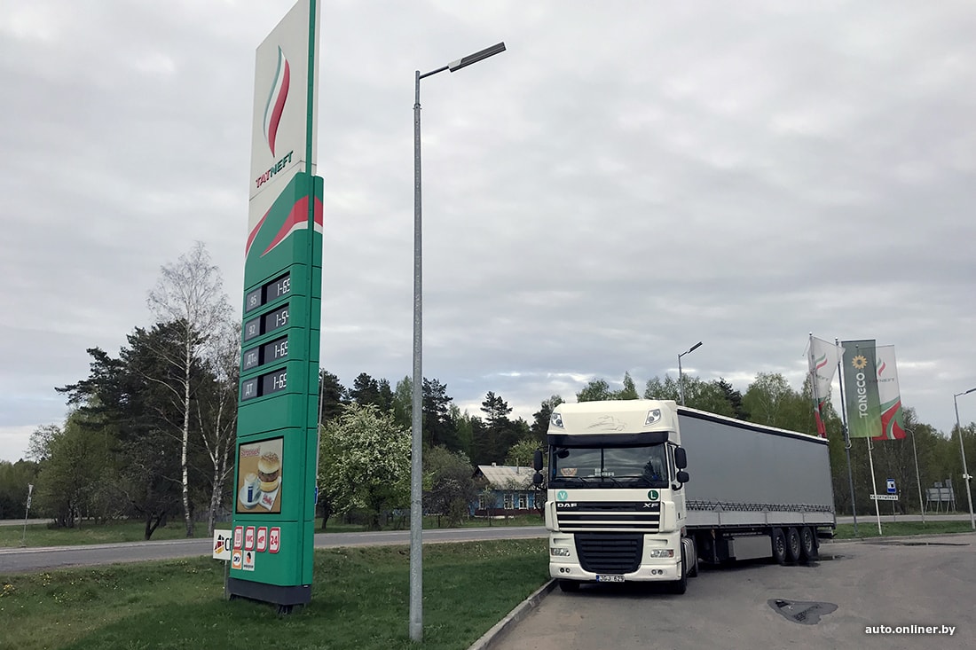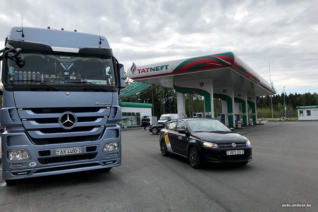 «Олимпийка», как еще называют трассу М1 (Брест — Минск — граница России), по-прежнему является торным путем между Востоком и Западом. Огромное число автопоездов перемещают в обе стороны колоссальный объем товаров, и, само собой, крупные сети АЗС тут как тут, чтобы предложить «прожорливым» грузовикам безграничное море топлива.