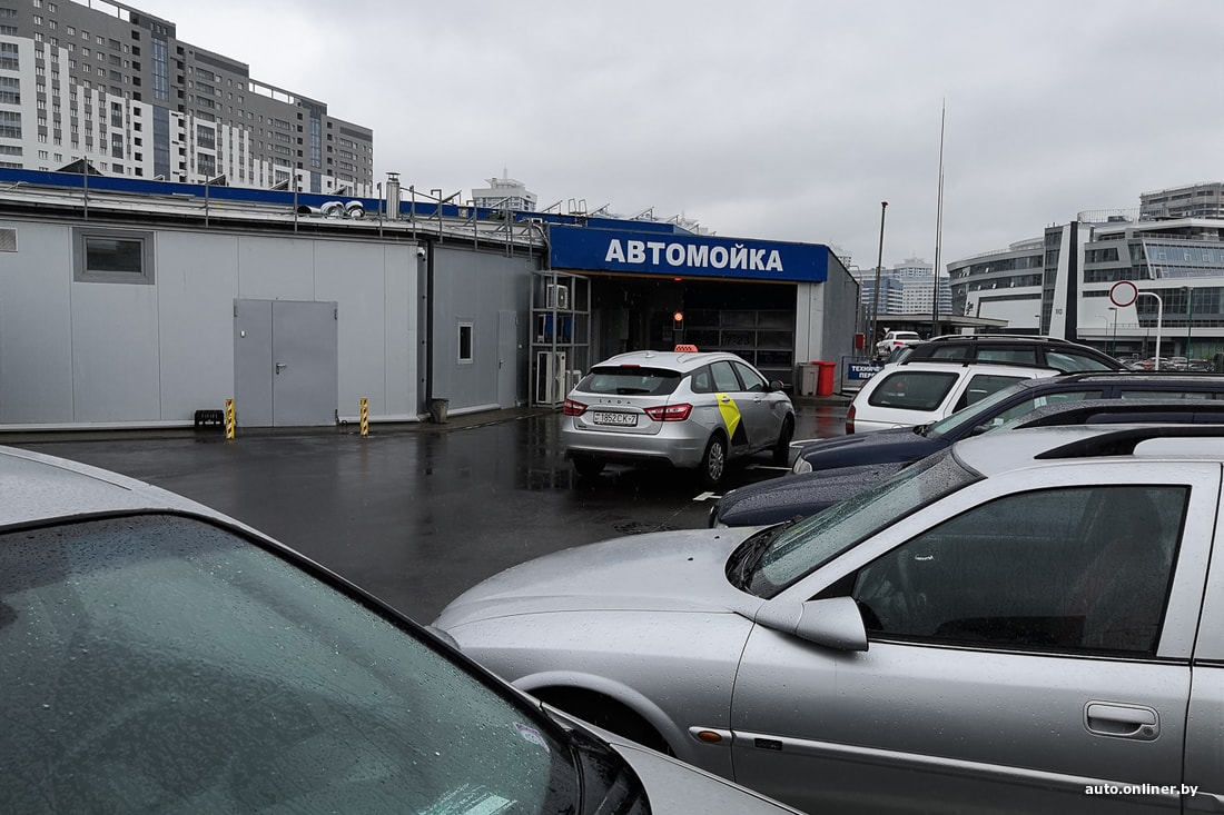 На этом пути водитель минует технические сооружения по приемке топлива, собственно колонки и парковку на десяток мест, на которой разместился пылесос. Ну а непосредственно перед выездом расположилась круглосуточная мойка самообслуживания с четырьмя постами. Работает она в автоматическом режиме. Аппарат принимает монеты и купюры и запускает время пользования. Тут же можно найти доступную инструкцию, расписанную по шагам: от ополаскивания до использования активного шампуня и так далее. Мы оказались на станции в дождливый день — при осадках, очевидно, услуга непопулярна. Но во время ясной погоды иногда тут выстраиваются очереди — особенно таксисты любят освежить машины с утра. Примечательно, что в самом здании АЗС есть еще одна мойка, тоже автоматическая.