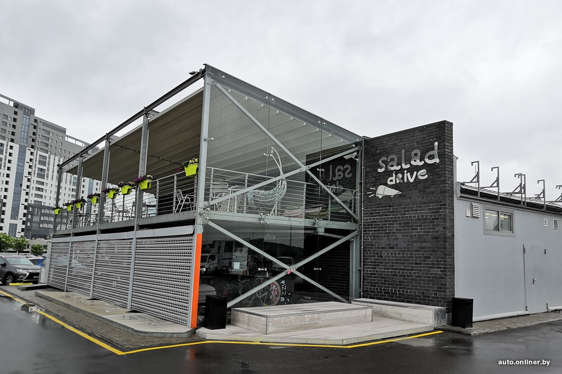 В том же здании разместились автомойка и химчистка. Но отдельного внимания заслуживает, конечно, кафе с террасой и местами для отдыха и перекуса на открытом воздухе.