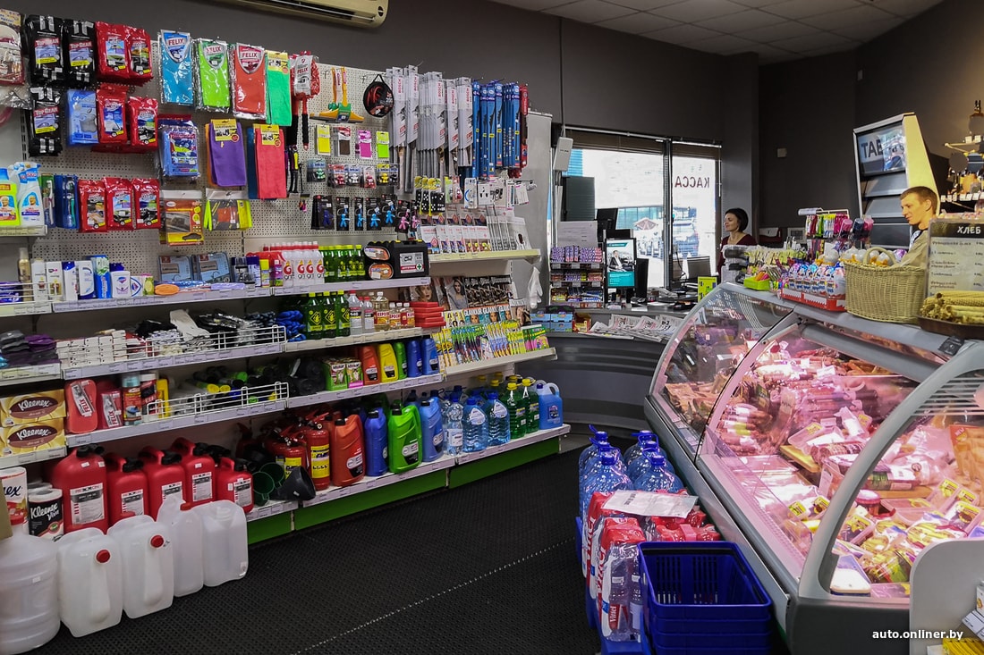 На прилавках стандартное для АЗС изобилие. Рядом с автомобильной химией теснится средство против комаров. Тот, кто забыл дома набор для бани, будет спасен и купит все, что необходимо. Один прилавок с водой, три-четыре — с алкоголем. Типичная ситуация, наверное, для всех исследованных тайным гостем станций. В холодильнике молочная продукция и какие-то мясные копчености в вакуумной упаковке — если вдруг не соблазнились щукой.