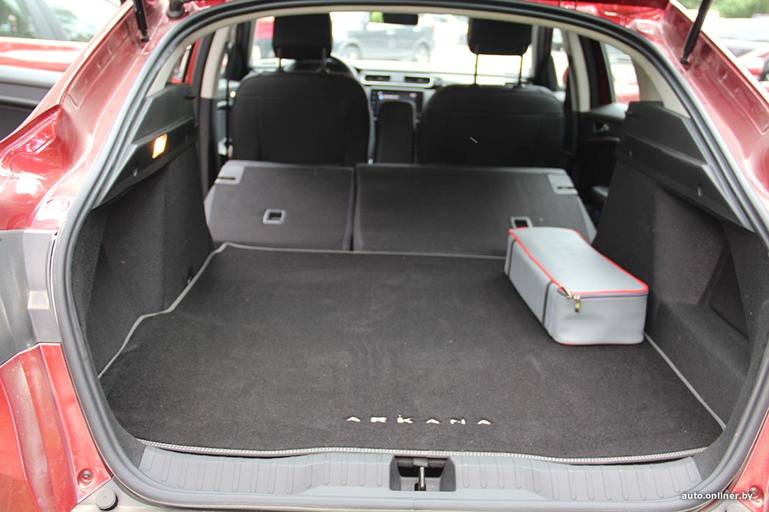 Если снаружи я (как бывший владелец Logan) глядел на кросс-купе как на незнакомку, то внутри меня ожидало слишком много привычного. Да, в форме воплощения есть много отличий, но по ощущениям — как будто сел за руль «бывшей». То есть без революционных откровений. Вроде бы есть атмосферная подсветка и большой матовый небликующий экран, но чувствуешь себя по-родному, по-логановски.