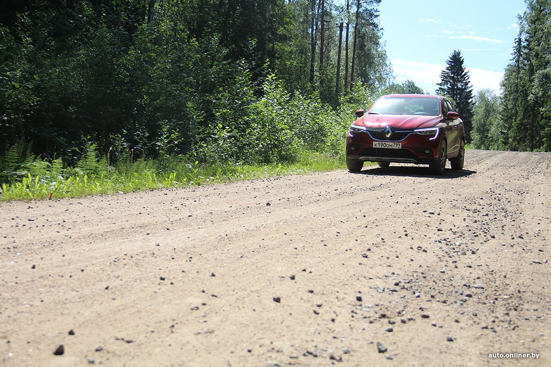 На самом деле я никогда не гнался за высотой клиренса. И даже на Sandero (не Stepway) бордюры бампером не цеплял. Да, Arkana достаточно высокая, чтобы ездить по легкому бездорожью. В качестве такового организаторы тест-драйва предложили грунтовую дорогу под Питером. Конечно, если в России такие трассы повсеместно, то штамповка кросс-версий любой модели вполне оправданна. Но очевидно, что это не так — в РФ хватает ровных дорог. А судьба «Арканы» — уж точно не взбираться по горам Камчатки.