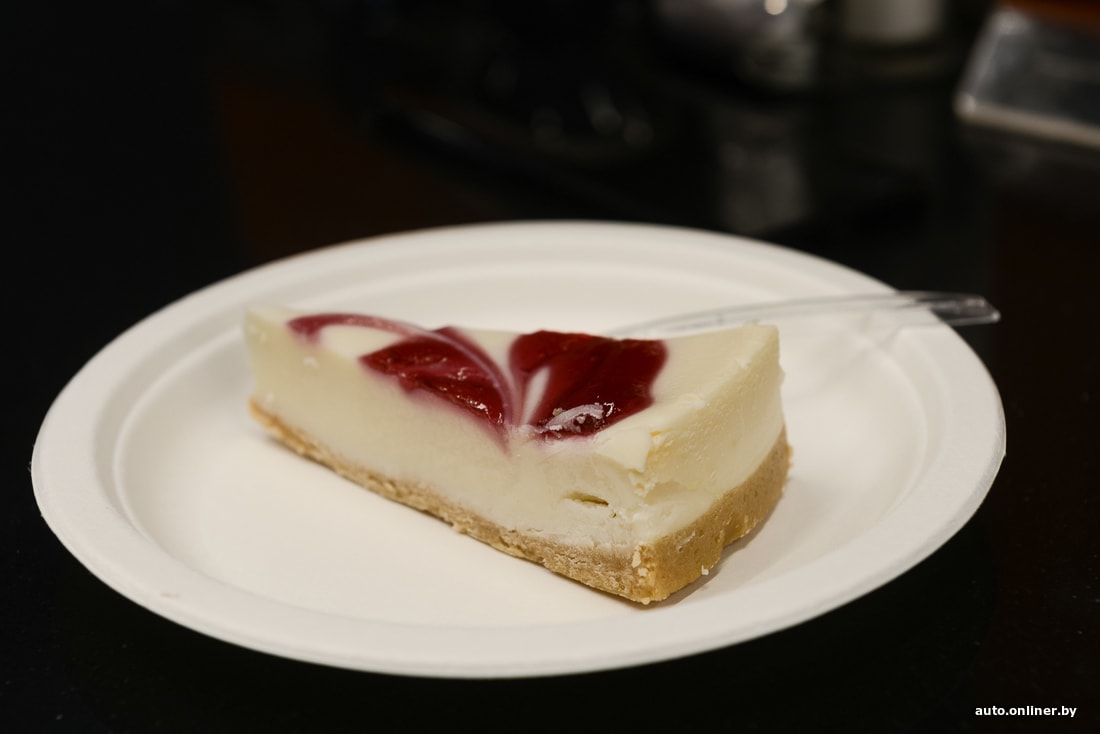 Выбираем морс, сразу на всех. А на сладкое — чизкейк. Чтобы сделать заказ, нужно пройти на кассу, но она в кафе отдельная, то есть не придется спускаться на первый этаж и ждать в очереди с теми, кому 20 литров 95-го на третью колонку.