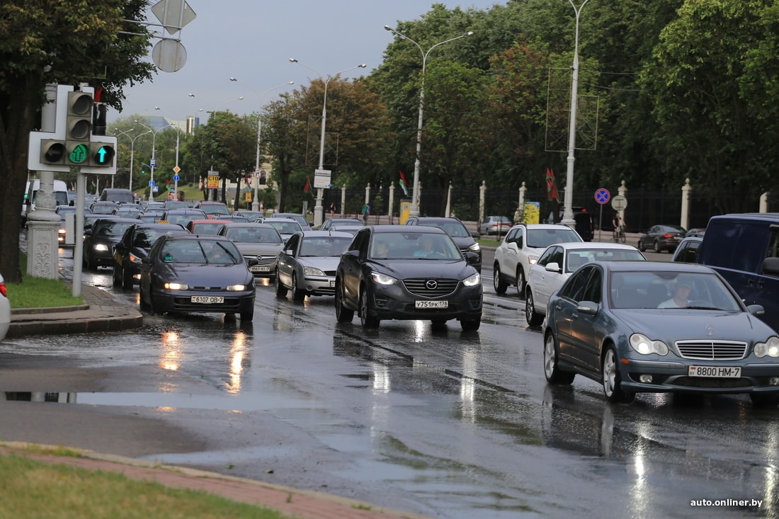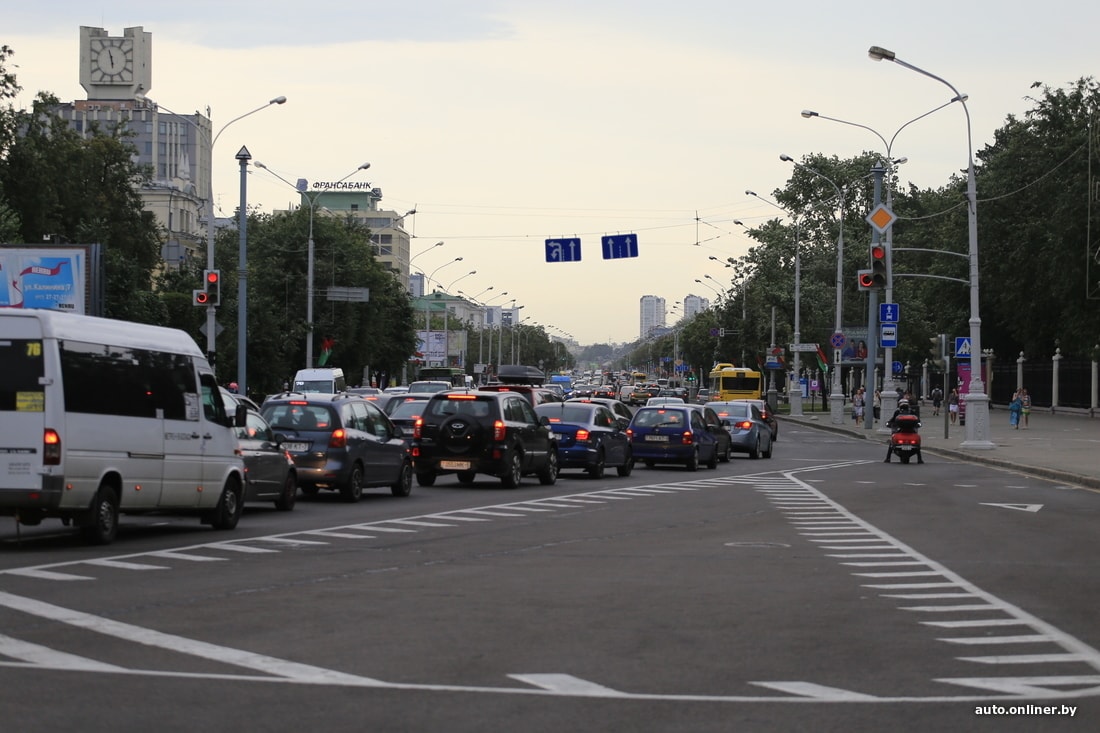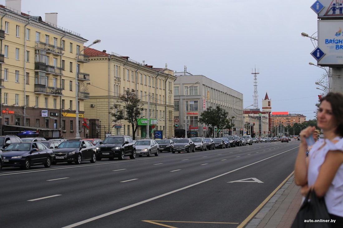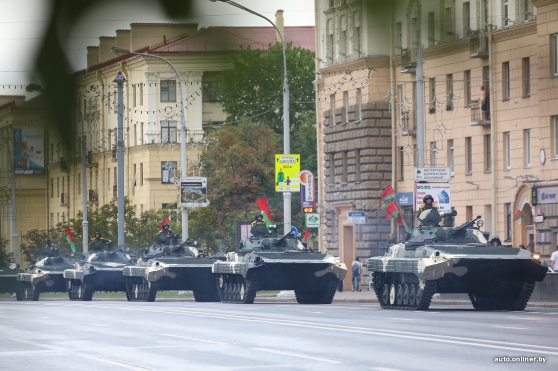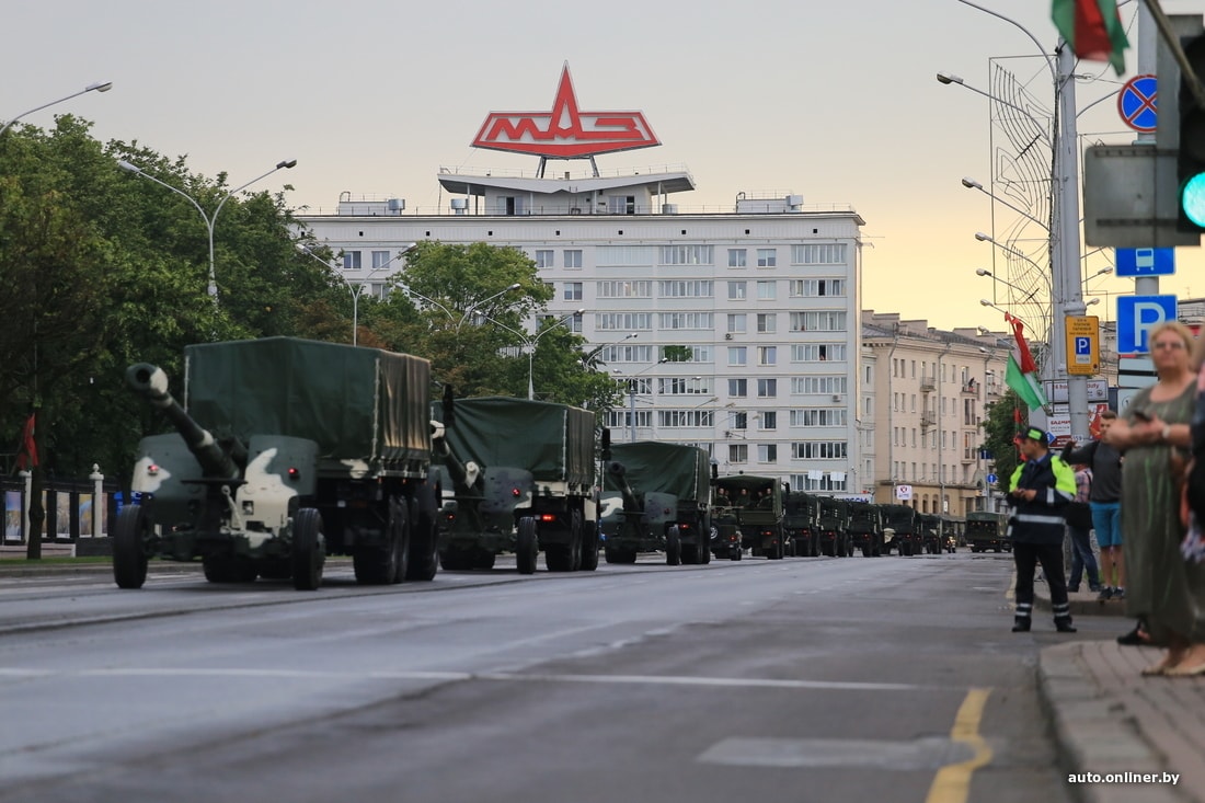 Не успели минчане пережить перекрытия, связанные с Европейскими играми, как подвернулся новый повод ввести ограничения — репетиция парада военной техники. В течение часа колонна шла по центру города. На нескольких улицах движение было перекрыто. В пиковый момент заторы достигали 9 баллов (по оценке сервиса «Яндекс.Пробки»). Onliner проводил онлайн-трансляцию.