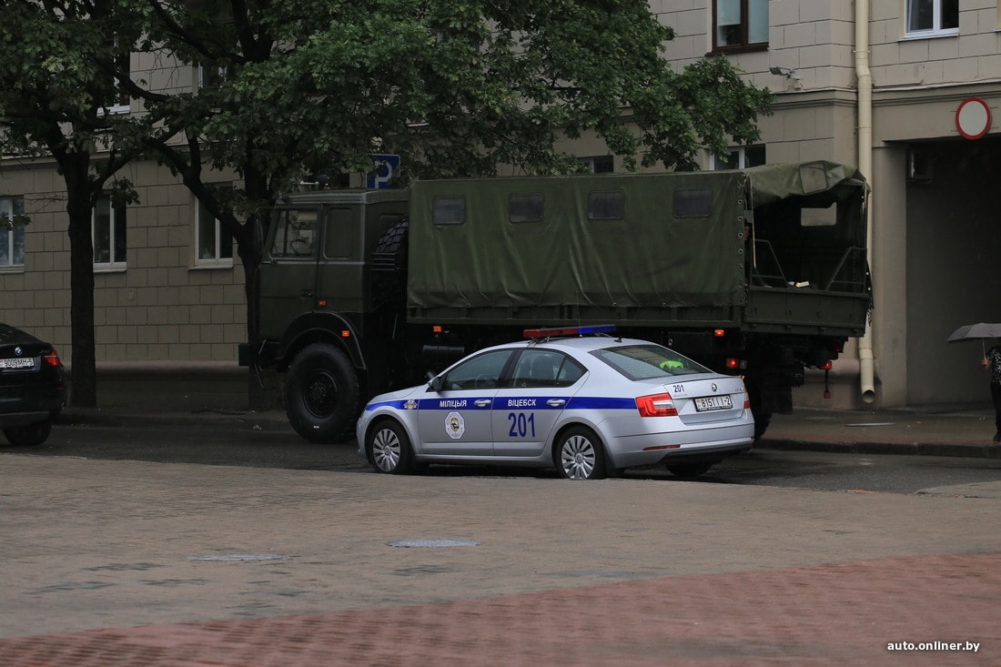 17:59. Поливальная машина выехала на проспект Независимости. А вслед за ней — военная техника.