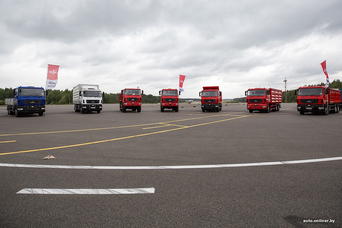МАЗ и немецкий концерн ZF к 30-летию своего сотрудничества организовали на полигоне в Липках выставку и тест-драйв автотехники. Испытать можно было тягачи «МАЗ-5440Y9» и «МАЗ-5440Е9», бортовой полноприводный автомобиль «МАЗ-5309М4» и полноприводный самосвал «МАЗ-6502С9».