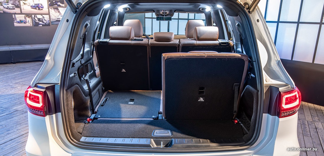Чуда не произошло, и семерых людей кроссовер перевезет либо без багажа, либо с парой рюкзаков. Багажник с тремя рядами кресел практически отсутствует (в Mercedes даже не сообщают литраж). А вот в 5-местном варианте объем грузового отсека составляет 560 литров. Это уровень сегмента С-SUV. Если же второй ряд подвинуть максимально вперед, «нарисуются» еще 179 литров. Ну а если оставить только два передних кресла, объем багажника достигнет 1755 литров. К слову, на третьем ряду имеются крепления Isofix для детских автокресел.
