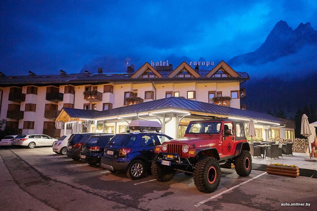 Сто пятьдесят километров по горным деревушкам растянулись на три с половиной часа, и мы приехали в городок, когда первый день фестиваля подходил к концу. Несмотря на то, что активности Camp Jeep были свернуты до утра, дух фестиваля присутствовал буквально на каждой улочке курортного населенного пункта. На парковках всех отелей были хаотично разбросаны «Джипы», кабинки канатной дорожки — с логотипами американского производителя. По улицам Сан-Мартино расхаживали бородатые мужики со своими женами и детьми.