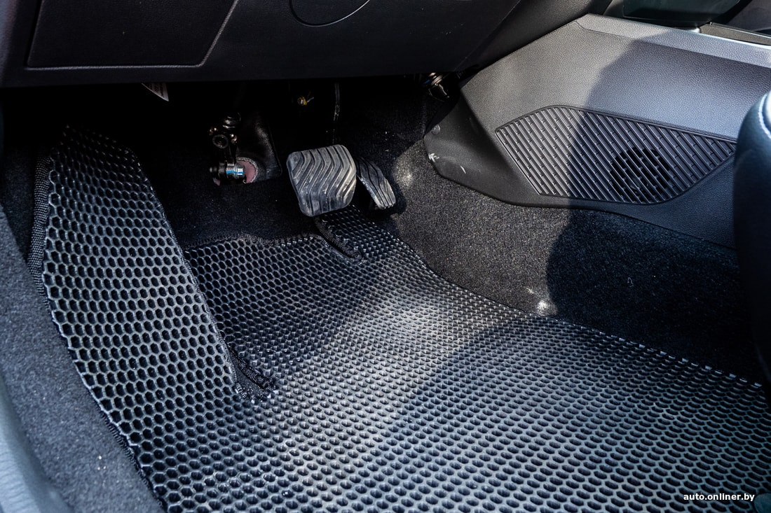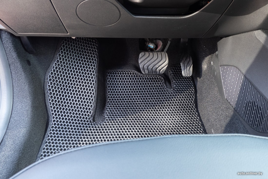 Оригинальные коврики от Renault решено было заменить. Выбрали материал, который стал популярным в последнее время. Речь об этиленвинилацетате (EVA), отличающемся легкостью, упругостью и немаркостью.