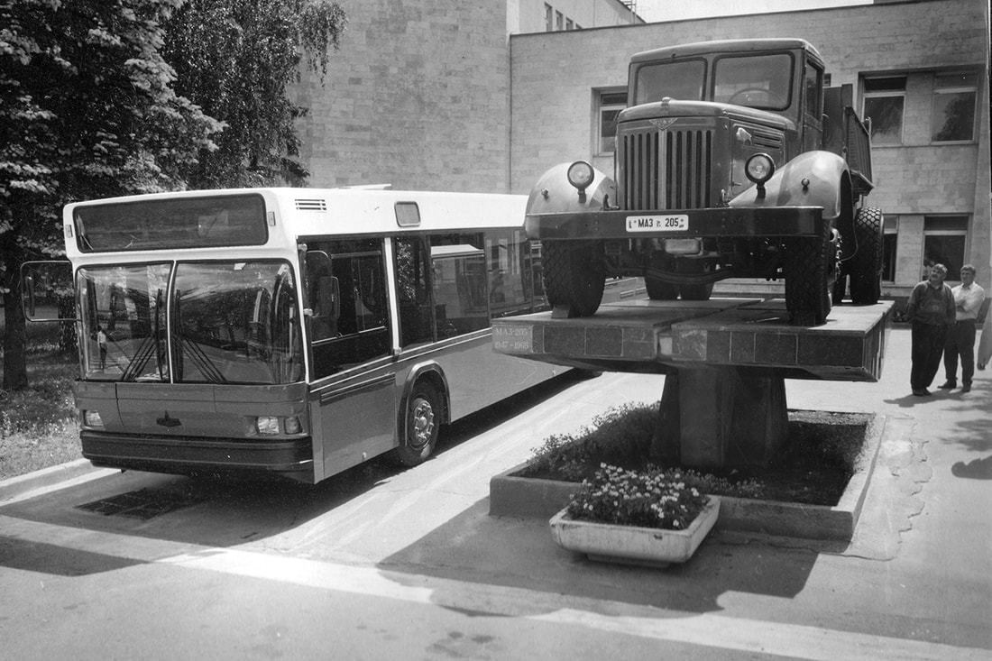 После распада СССР предприятие оказывается в затруднительном положении. Старые связи хоть и не были утрачены, но спрос на грузовую технику явно упал. Нужно было искать новые решения, и завод берется за выпуск автобусов, подписав в 1992 году договор с немецкой компанией Neoplan. Мы уже рассказывали подробно о том, как появились белорусские автобусы.