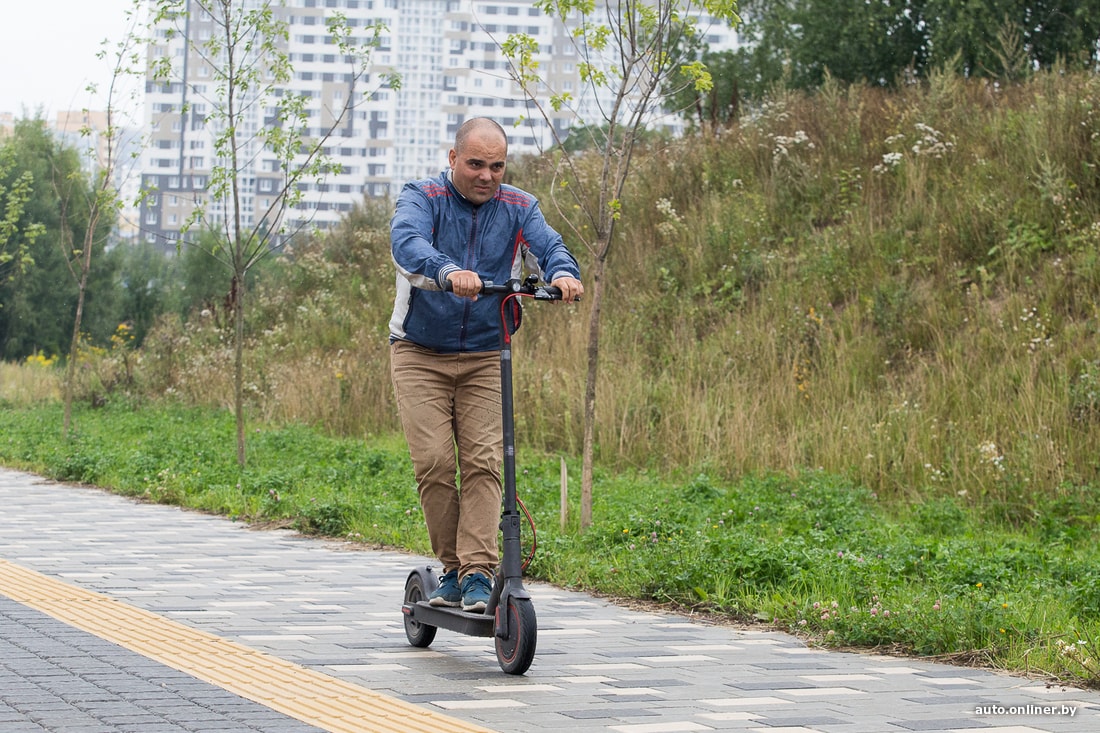 — Тридцатку с горки я ехал. Мое мнение: такая скорость на тротуаре — это опасно, хоть она и сопоставима со скоростью велосипеда. В горку самокат тянет где-то 25 км/ч — нормально, — говорит эксперт в вопросах безопасности дорожного движения. — Не думаю, что на таком транспорте нужно ездить по проезжей части. Тротуары или велодорожки ему подходят больше.