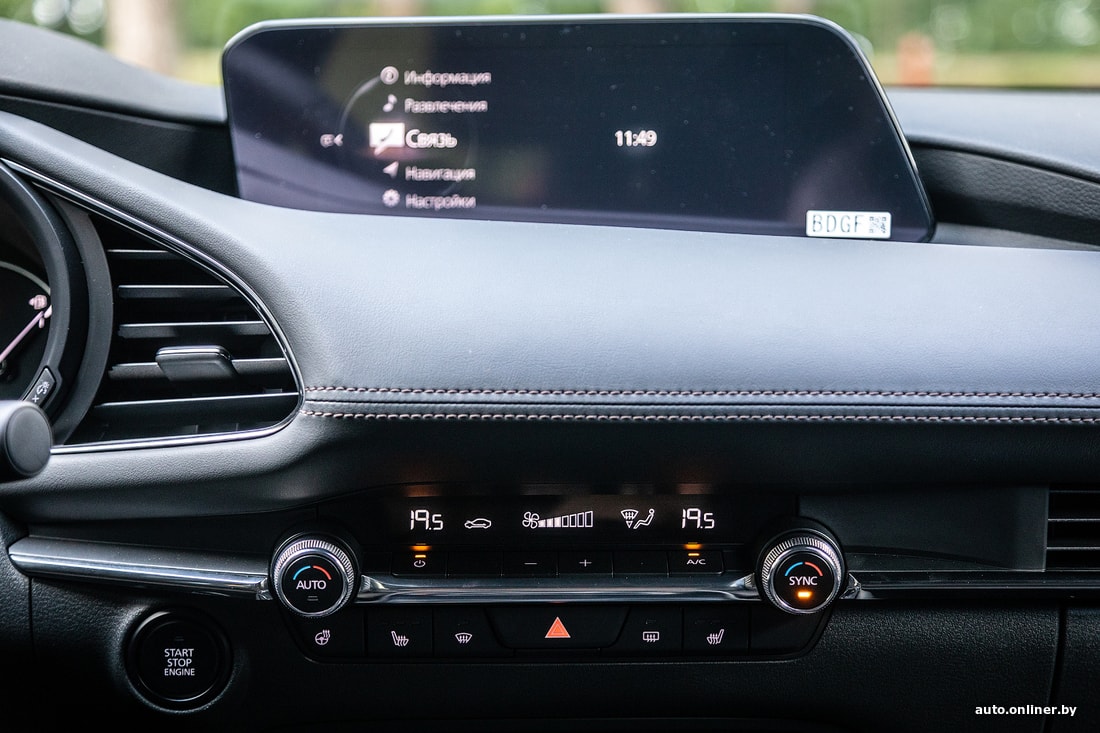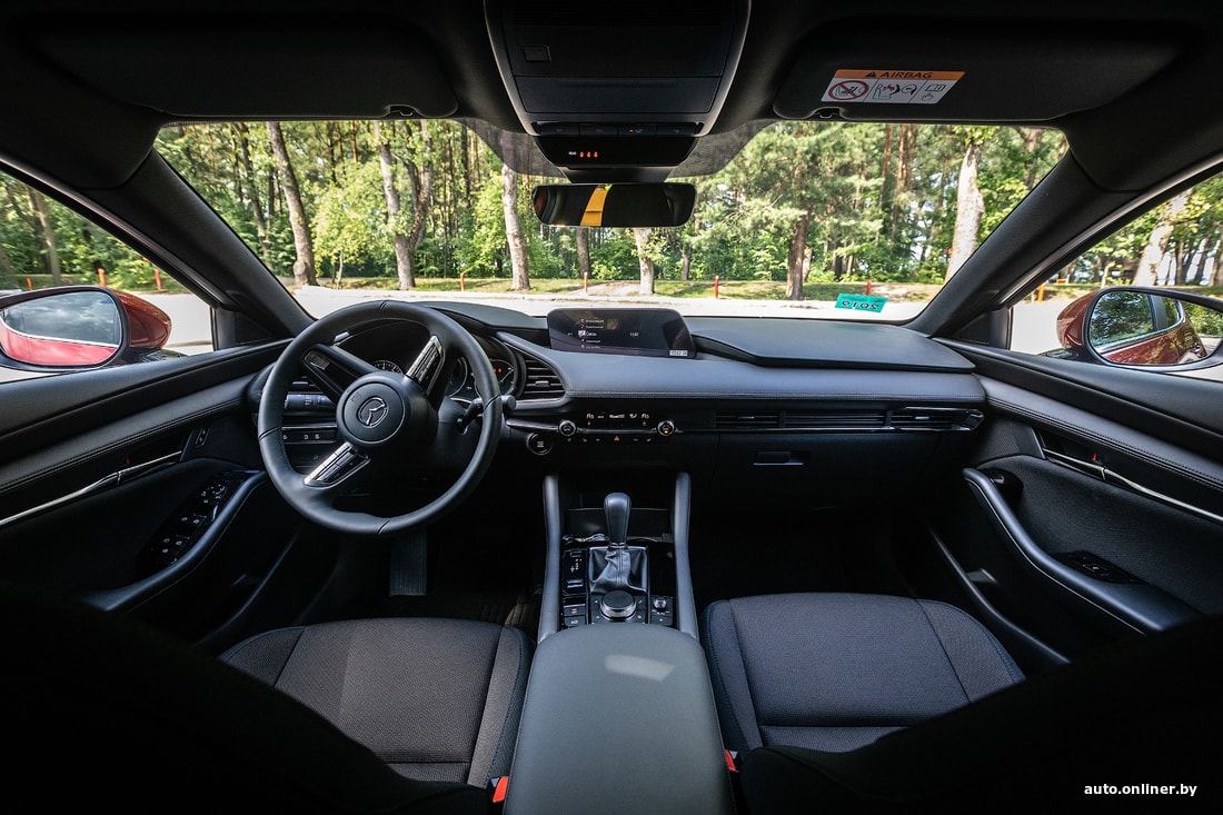 Японцы перестали делать пародии на салоны BMW и создали свой уникальный облик интерьера, отличающийся хорошей эргономикой и интуитивно понятным расположением клавиш. Россыпи непонятных кнопок не было и в предыдущем поколении Mazda3, а в модели 2020 года создатели решили еще больше упростить салон. Визуально это сделало его более дорогим! Центральной консоли как таковой не осталось — между тоннелем и верхней передней панелью поместился только блок управления климат-контролем.