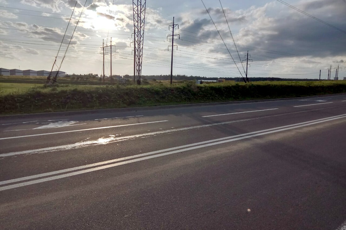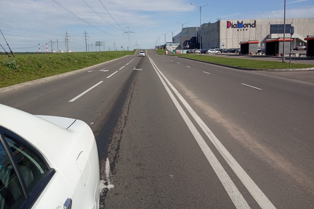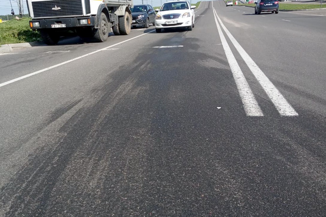Елена даже сфотографировала состояние проезжей части после проезда ее Atlas. Вот этот хорошо заметный жирный след — это моторное масло из ее нового автомобиля.
