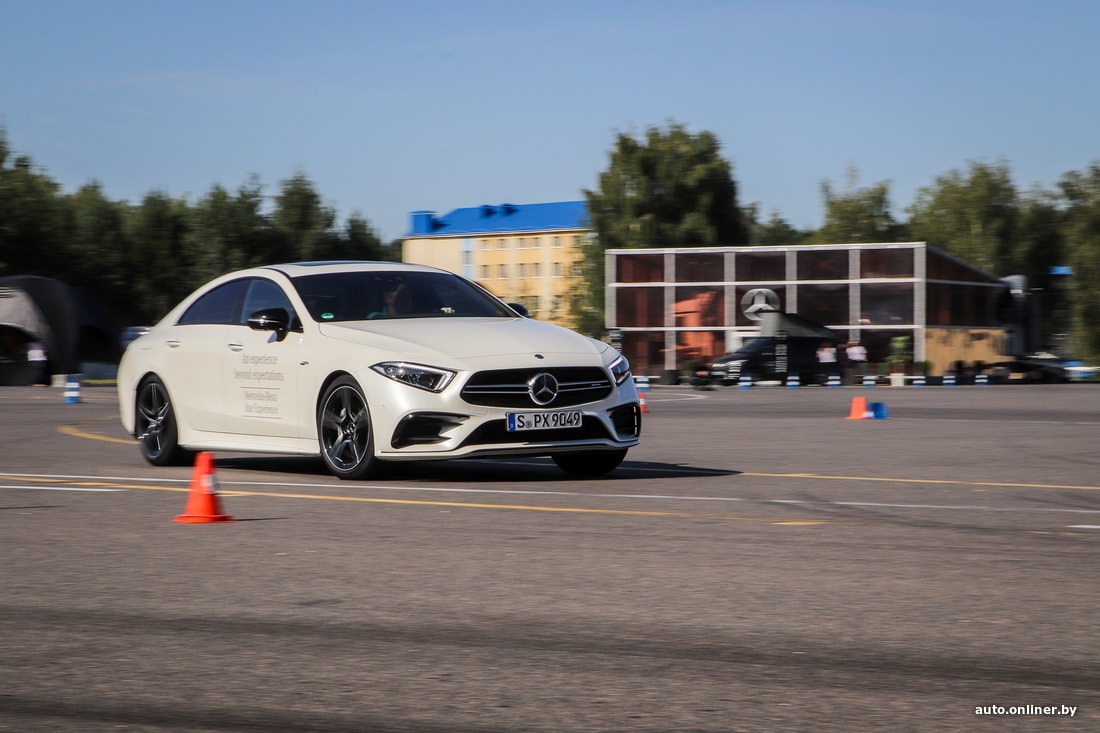 Ну и вишенкой на торте Star Experience стали заезды по выставленной фишками трассе. Буквально десять поворотов, одна длинная прямая, пять мощных Mercedes, визг девушек-водителей. Оторваться на трассе прибывшим гостям предложили на AMG A35, AMG CLS53, AMG E53, полноприводном C400 и AMG GT63 S. Автомобили двигались колонной за инструктором. Если немец видел, что водители справляются с темпом, он увеличивал скорость. Водители поочередно менялись, чтобы все гости попробовали проехаться на всех машинах.