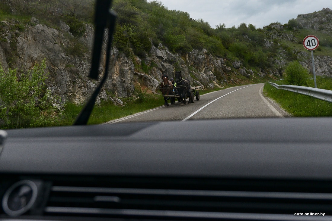 На трассах за пределами городов тут можно рассмотреть всякое. Тот самый албанский колорит.