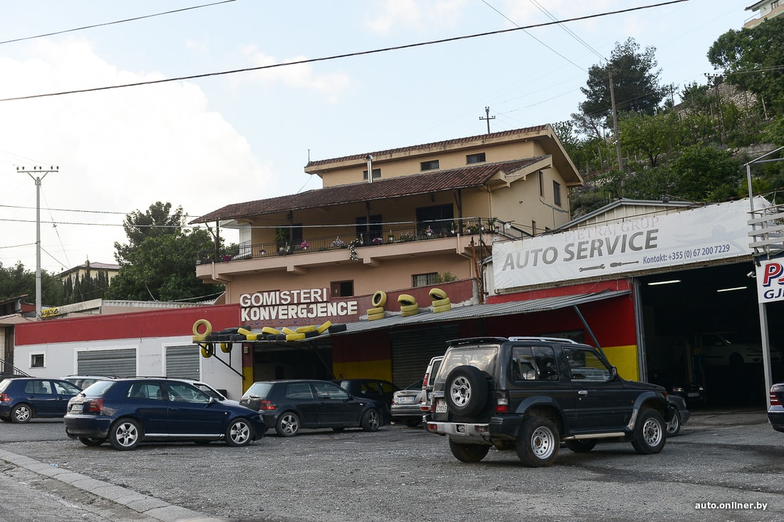 За кадром. В Албании много автосервисов, разборок, мастерских. Очень много.