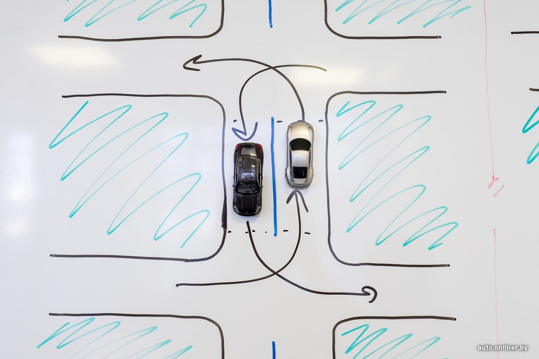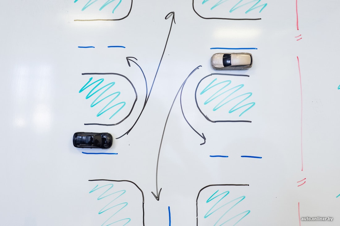 «Как должны разъезжаться автомобили — левыми или правыми сторонами?» — с таким вопросом обратился житель Борисова. По его словам, на ул. Чапаева при развороте (водитель полагает, что выполняет именно этот маневр; почему это важно — ниже) он каждый раз упирается во встречные машины. Кто прав? «В данной ситуации у обеих сторон есть основания думать, что они имеют преимущество, — считает Юрий Краснов. — Подобные перекрестки можно встретить в разных городах Беларуси, в том числе в Минске. Достаточно понаблюдать пару минут, и вы убедитесь, что водители ведут себя по-разному».
