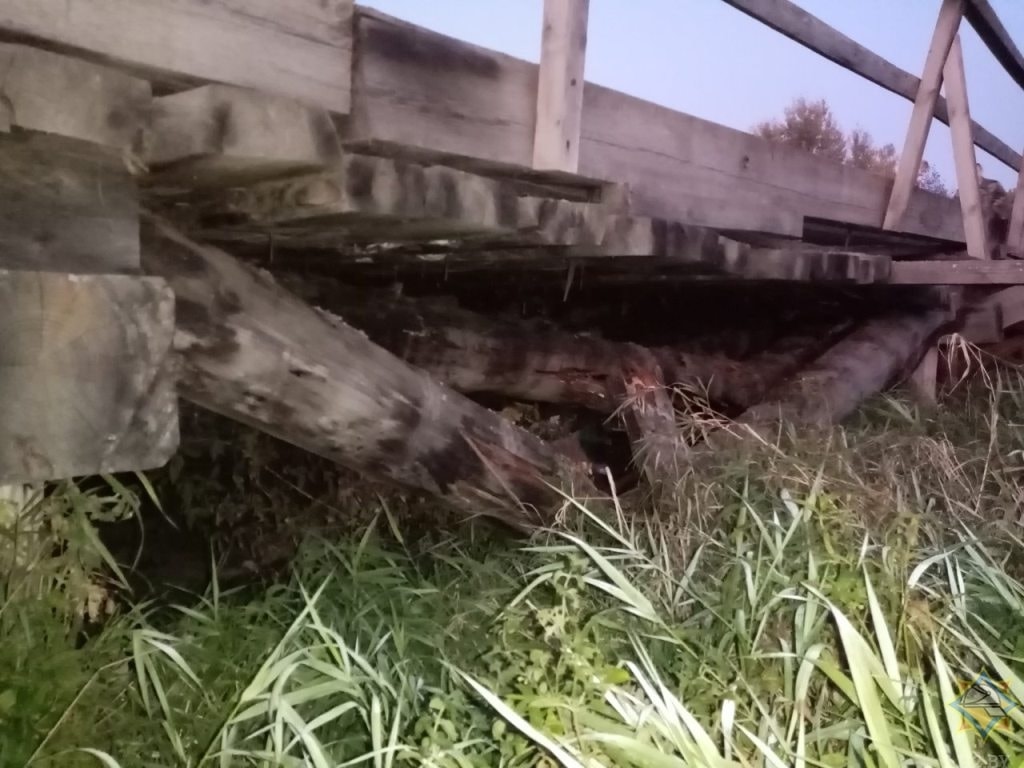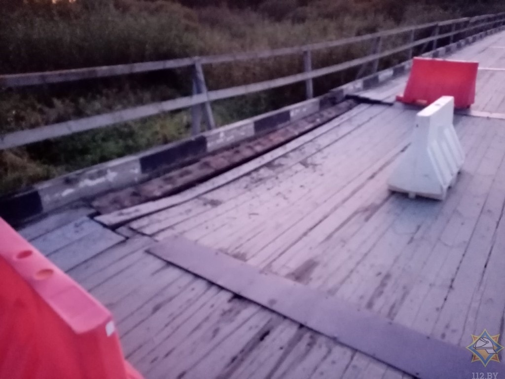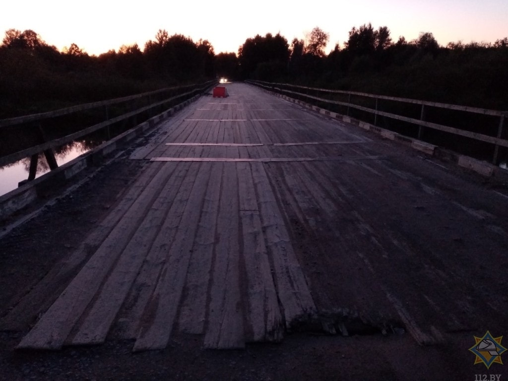Вчера вечером спасателям поступило сообщение о том, что поврежден деревянный мост через Птичь в Октябрьском районе. Считается, что это временное сооружение — пока не построят нормальный железобетонный мост. Пикантность ситуации в том, что про этот временный мост мы уже писали в 2016 году (и уже тогда он был немолод). Теперь движение закрыто, надо делать порядочный крюк.