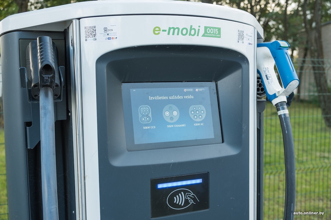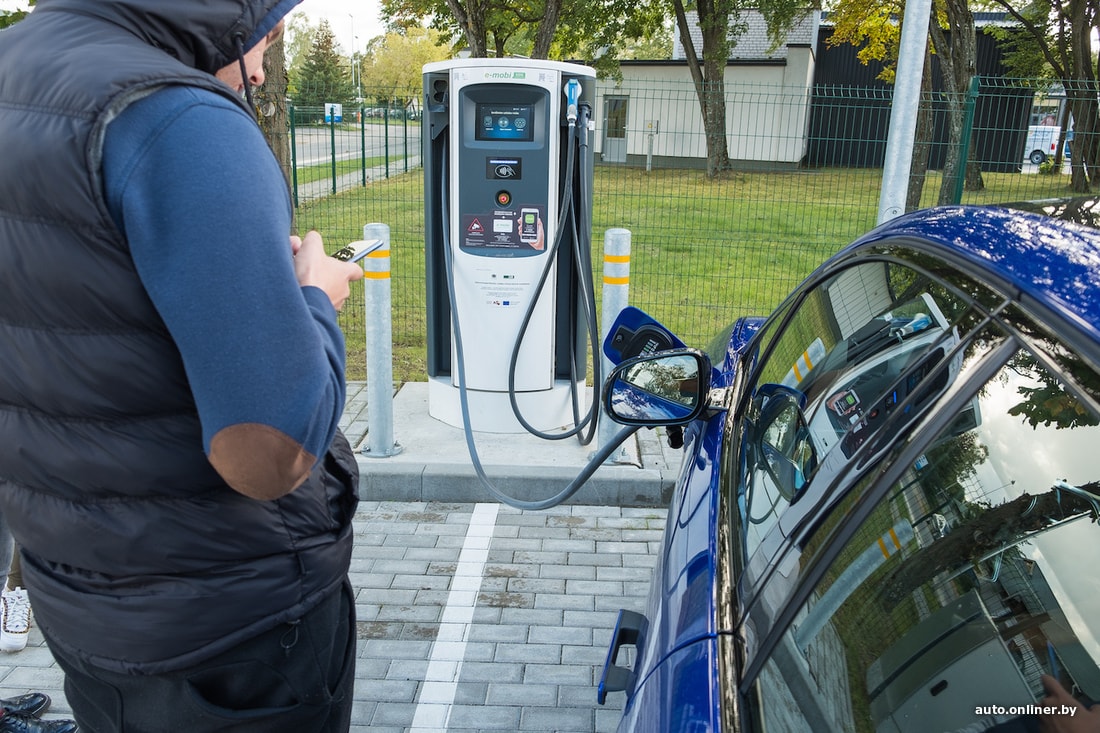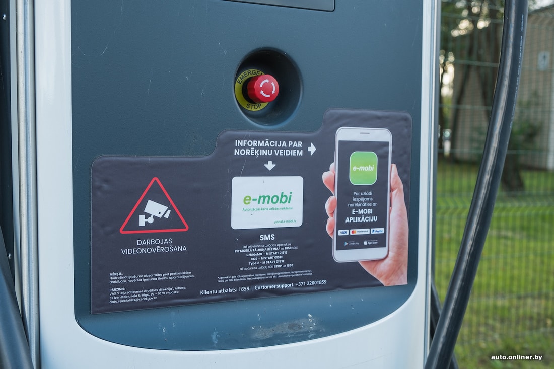По плану следующая остановка на дозарядку — в Даугавпилсе. К ней мы подъезжаем с 20% уровня заряда и 63 км запаса хода. Пока все в порядке — место свободно, а рядом торговый центр, где можно будет скоротать время (часа два). Скачиваем приложение e-mobi, без которого волшебство не начнется, соединяем то, что должно соединиться, и ждем, когда на экране появится надпись «Идет зарядка». Но... ничего не происходит — колонка пытается нас «прочесть», доходит до этапа инициализации и стопорится.