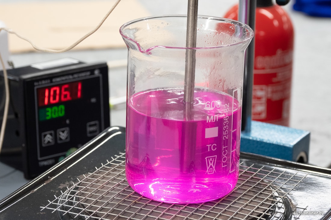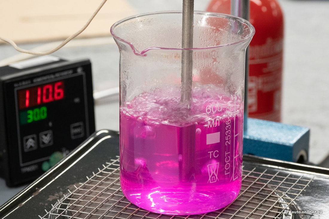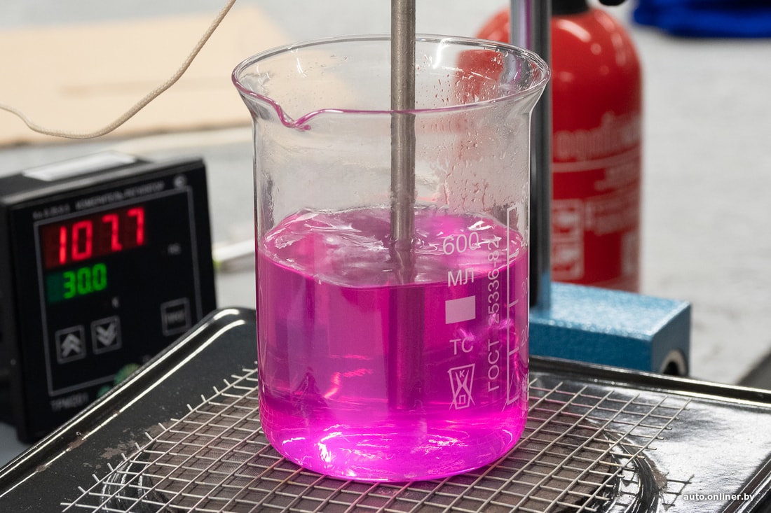 При +88,5 градуса специалисты констатируют устойчивое кипение: «Это отвратительного качества антифриз. Представьте, что будет, если залить такую жидкость в автомобиль. Да, в системе охлаждения другое давление, при котором температура кипения выше, но все же...»