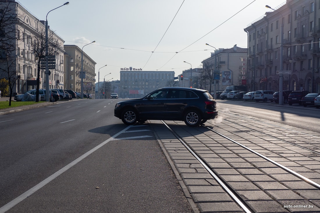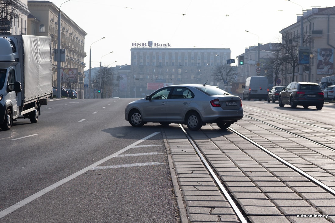 По словам Юрия Краснова, в схожей ситуации он предпочитает выполнять разворот на пл. З. Бядули, а не выезжать на рельсы.