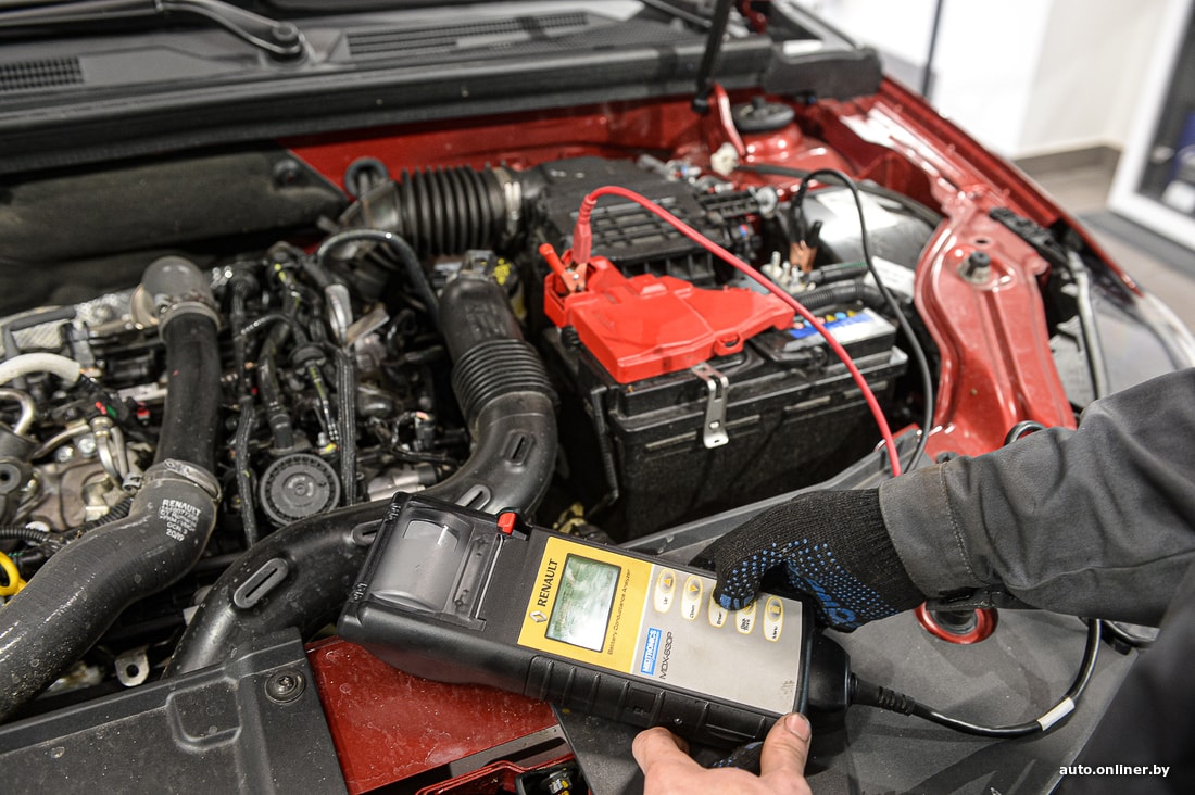 Раз подняли капот, можно взглянуть и на аккумулятор — проверить уровень заряда. В Arkana плюсовая клемма закрыта пластиком, но предусмотрена специальная лапка — для „прикуривания“. Представители дилера напоминают правила: «Если вдруг автомобиль не заводится и приходится прибегать к помощи проводов, нельзя запускать севшую АКБ. Помощник вначале накидывает провода на свою батарею, потом — на вашу. Далее он заводит свою машину, а ваша не работает, просто стоит. Идеально, чтобы процесс длился 20—25 минут, а „прикуривающий“ водитель держал 1,5 тысячи оборотов. Затем помощник глушит свой двигатель (чтобы не „сжечь“ свой генератор), и только после этого вашу машину можно заводить».