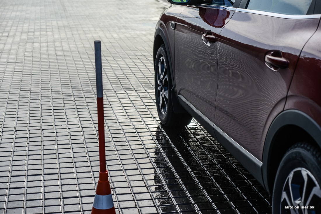 Теперь продукции from China предстоит испытание на белорусском базальте. Разгон до 40 км/ч, резкое торможение. Все так же жалобно стрекочет ABS. На таком покрытии очень хорошо понимаешь, как ведет себя автомобиль в очень скользких условиях: даже на прямой останавливается натужно.