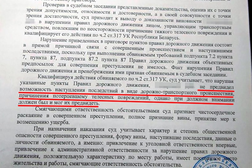 — Мне 22 года, я понимаю, что теперь жизнь может пойти под откос. С работы пришлось уволиться — без прав я не могу работать водителем, а других вакансий нет. В милицию я теперь не могу пойти, так же, как и работать на госпредприятиях, — у меня же судимость, — поясняет парень. — Наверное, если бы я тогда посмотрел налево, у меня был бы шанс заметить пешехода. Я согласен с тем, что за рулем нужно быть внимательным, но как предсказать, что через столько полос под колеса прибежит человек? Я не смог это предугадать, а по закону должен был — в этом моя вина. Но как такое предугадывать, вот чисто по-человечески?